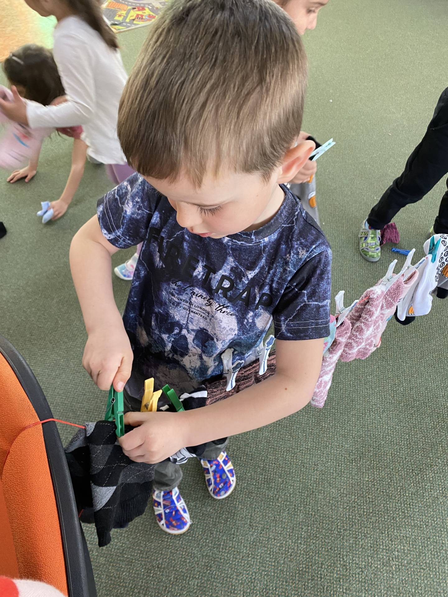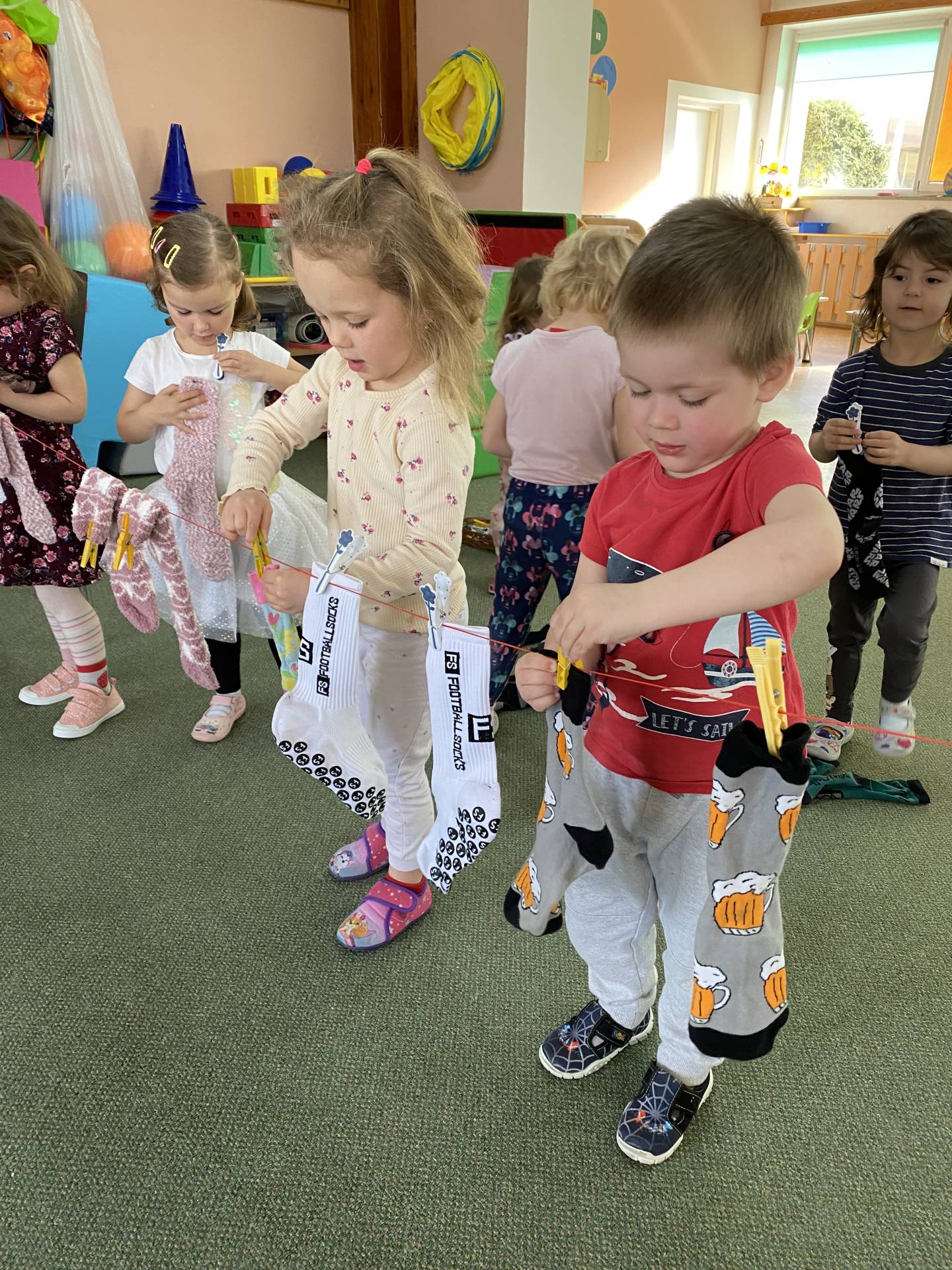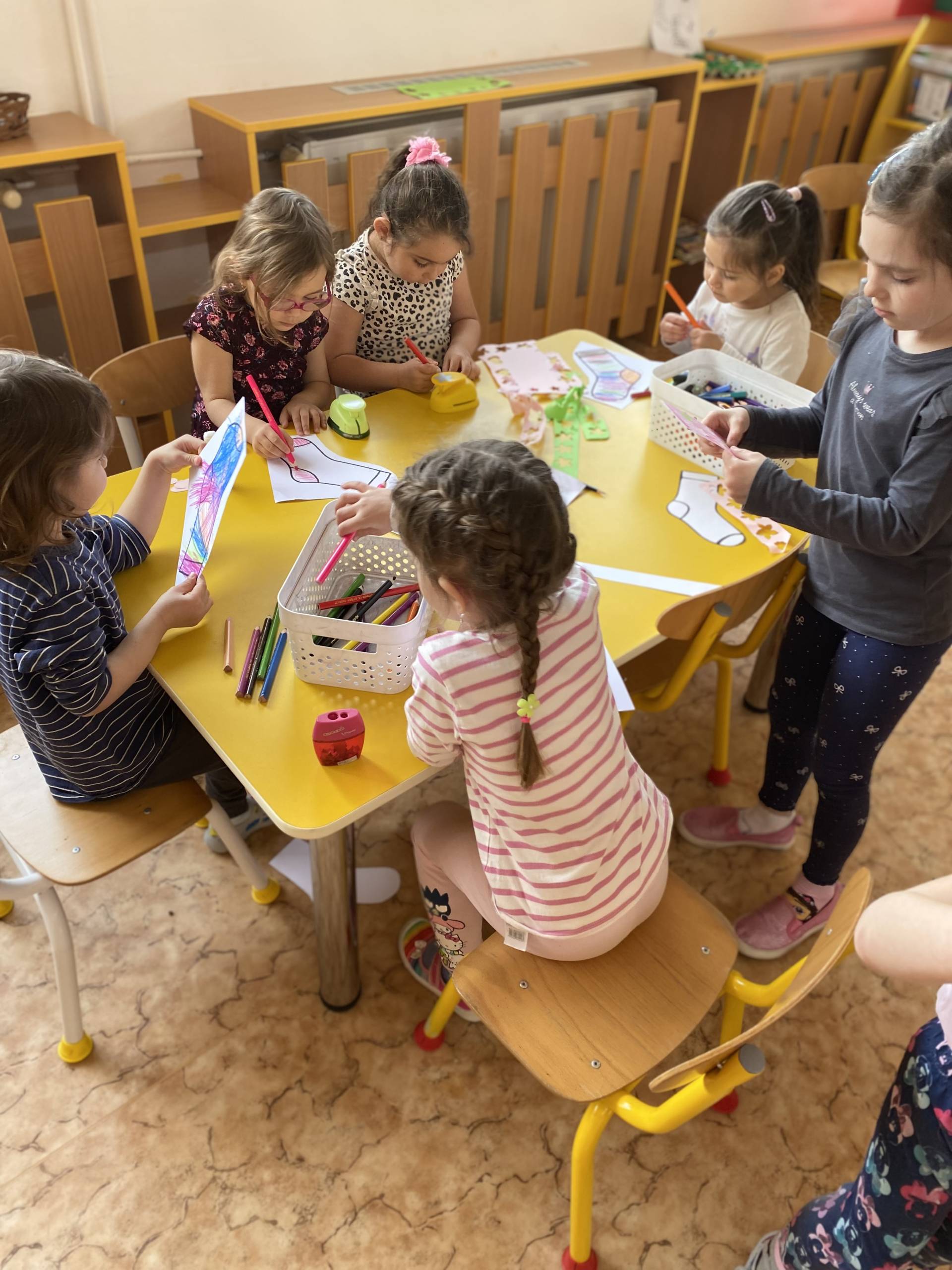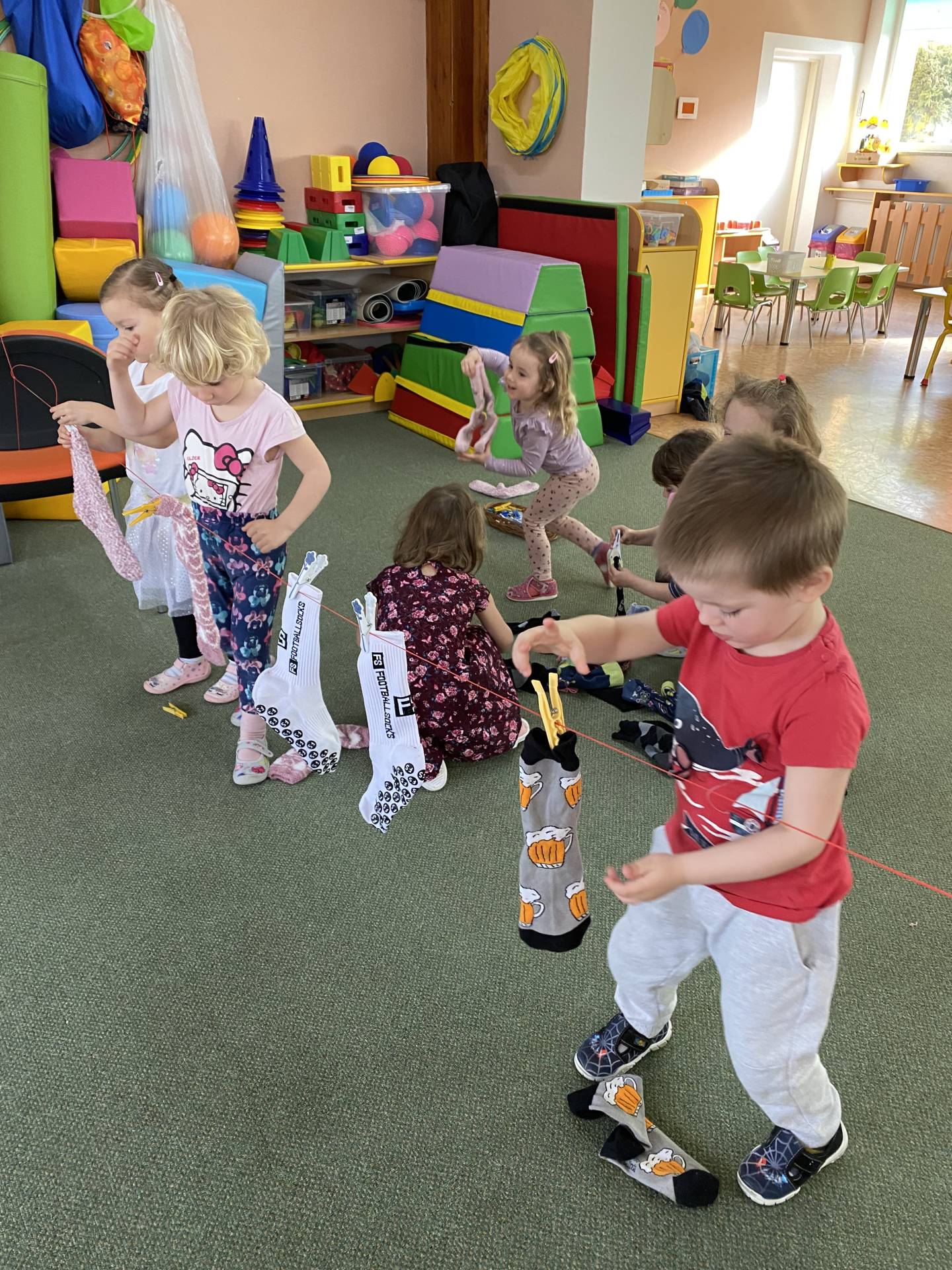 Během dne děti třídily ponožky podle barev a velikostí, věšely je na šňůru a vyrobily si také vlastní papírové ponožky, které si s radostí ozdobily podle své fantazie. Nechyběly ani tematické hry zaměřené na rozvoj emocí, empatie a sociálních dovedností.