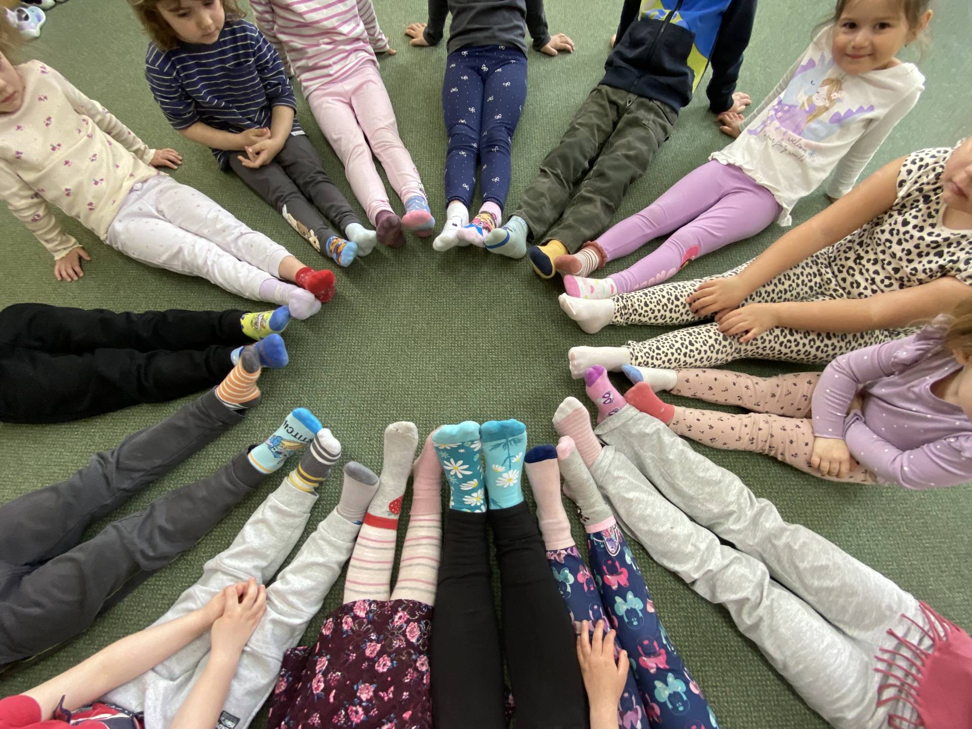 Na znamení podpory a přijetí odlišnosti si děti oblékly na každou nožku jinou ponožku. Povídali jsme si o tom, že každý z nás je jedinečný a že odlišnosti jsou přirozenou součástí života.