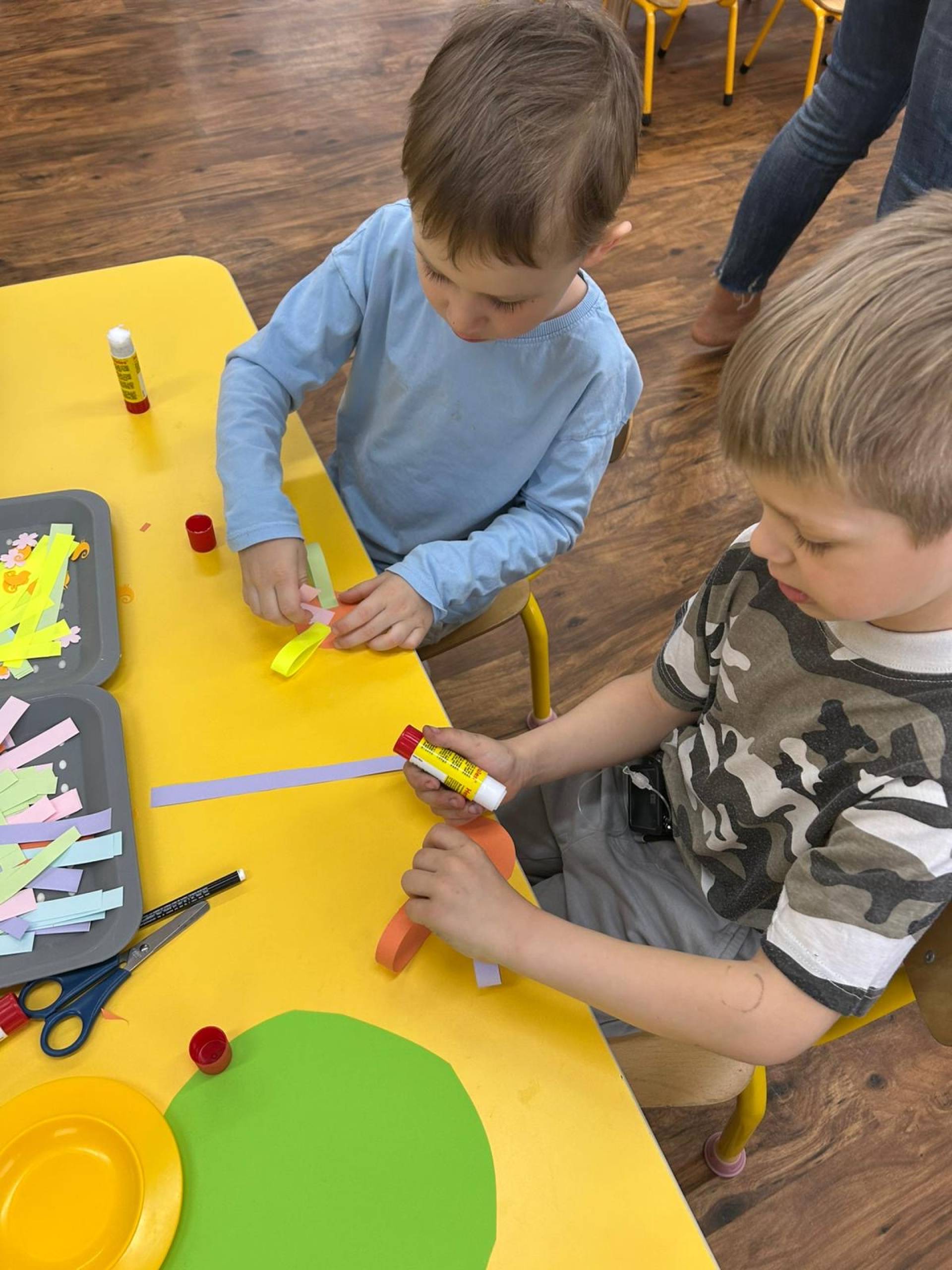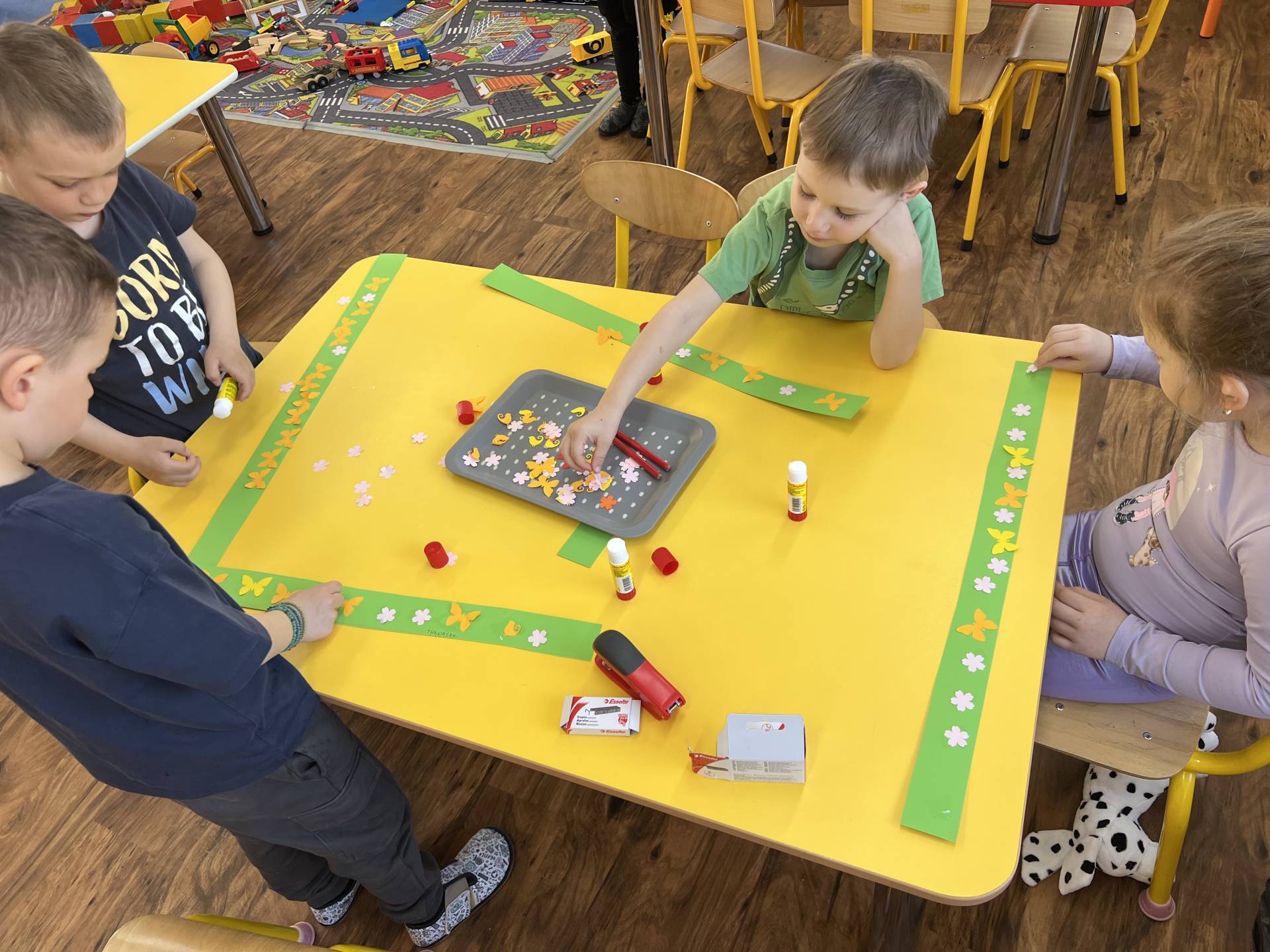 Nezapomínáme ani na první jarní kytičky, které objevujeme venku v přírodě při našich vycházkách. A těmi vyrobenými z papíru jsme si vyzdobili třídu.
