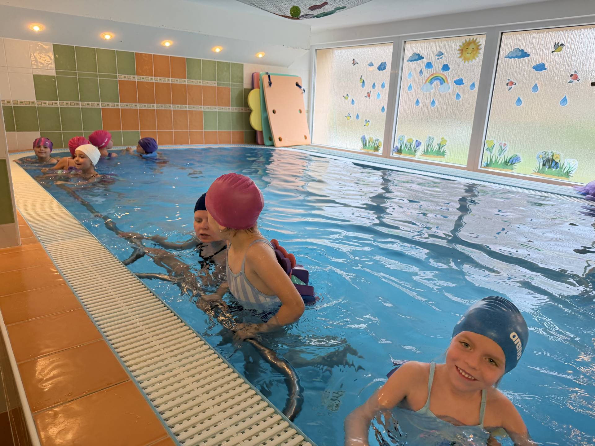 Děti se ve vodě cítí jistější a uvolněnější. I ti, kteří měli zpočátku obavy, nechávají strach na břehu a do různých her a zábavných aktivit se zapojují s radostí. Tím se postupně učí základům plavání a získávají větší odvahu. Z pokroků dětí máme velkou radost a už se těšíme na další lekci.
