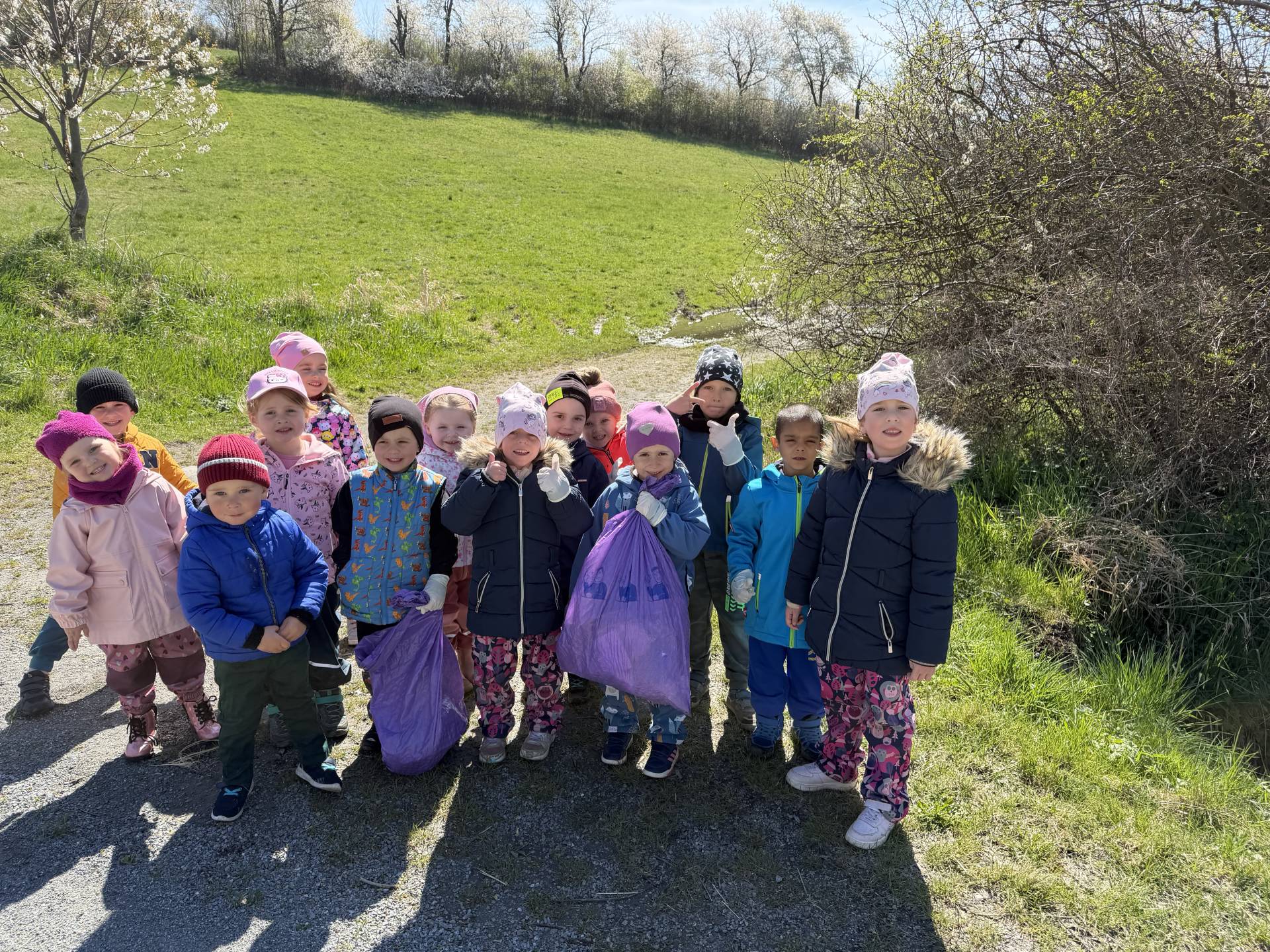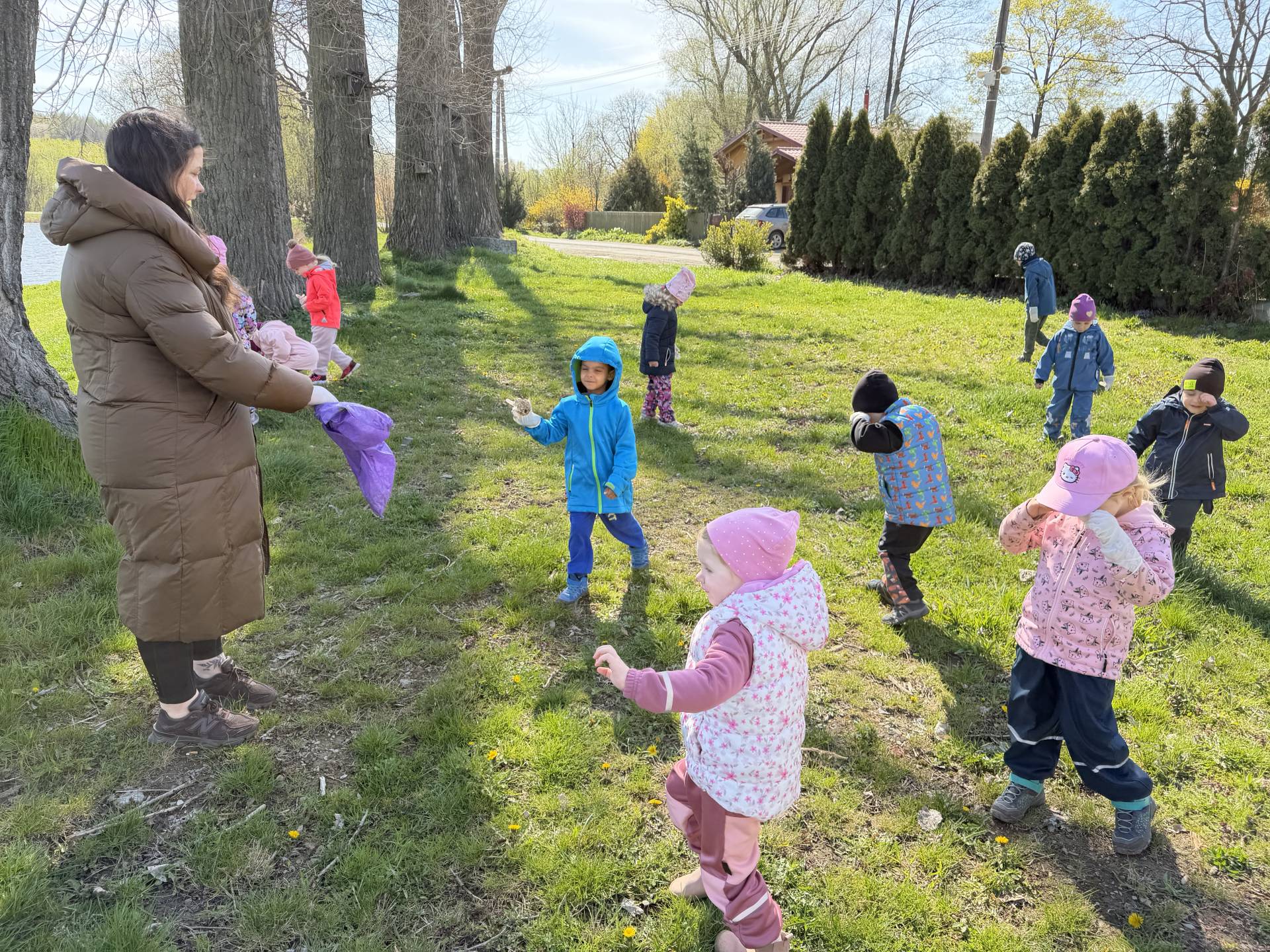 Dnes na oslavu Dne Země jsme vyrazili ven. S rukavicemi na rukou jsme se společně vydali k rybníčku pomoci přírodě. Děti s nadšením sbíraly odpadky a společně jsme naplnili plné pytle. Děti měly radost, že mohou samy přispět a udělat něco dobrého pro své okolí.
