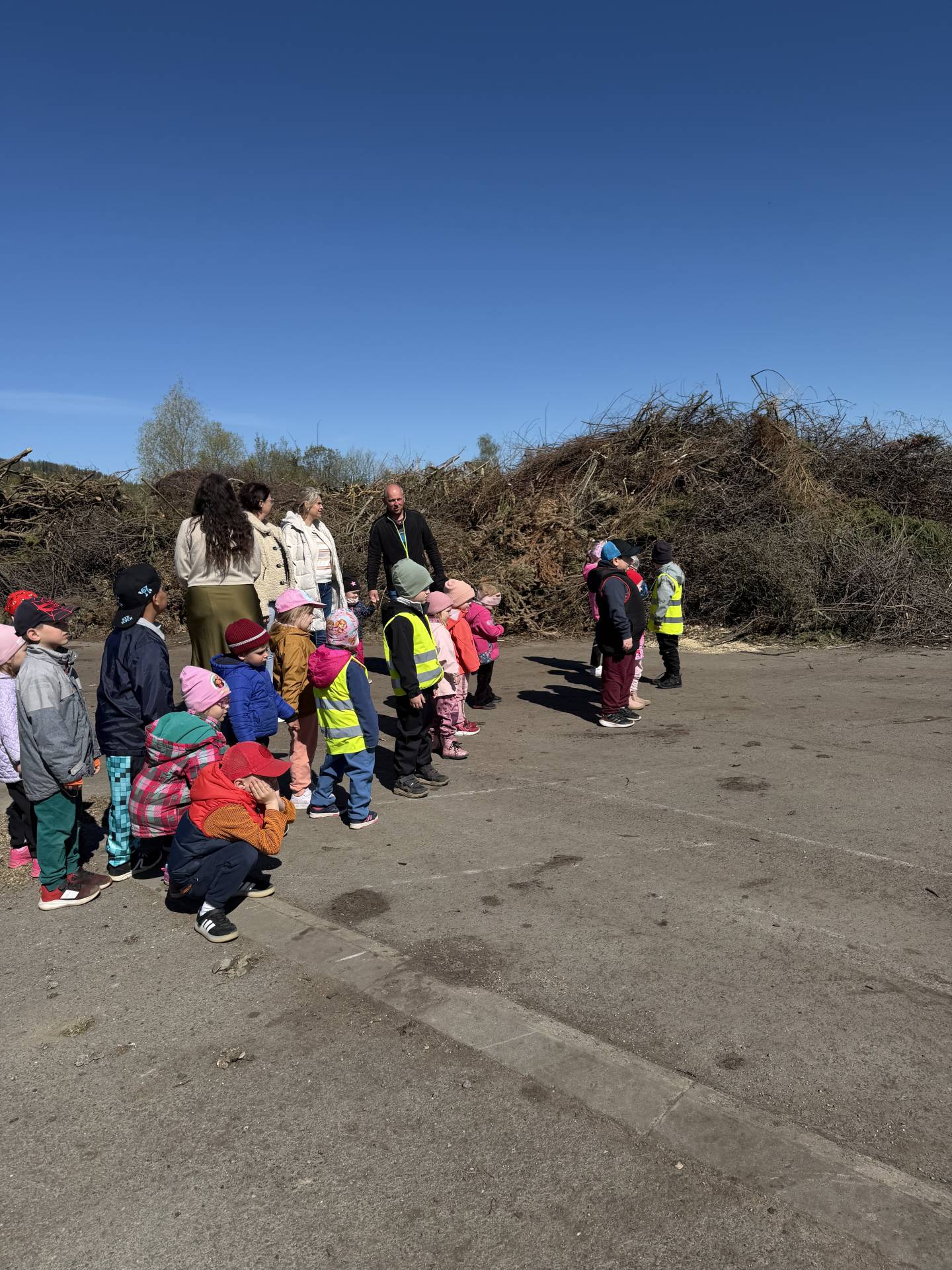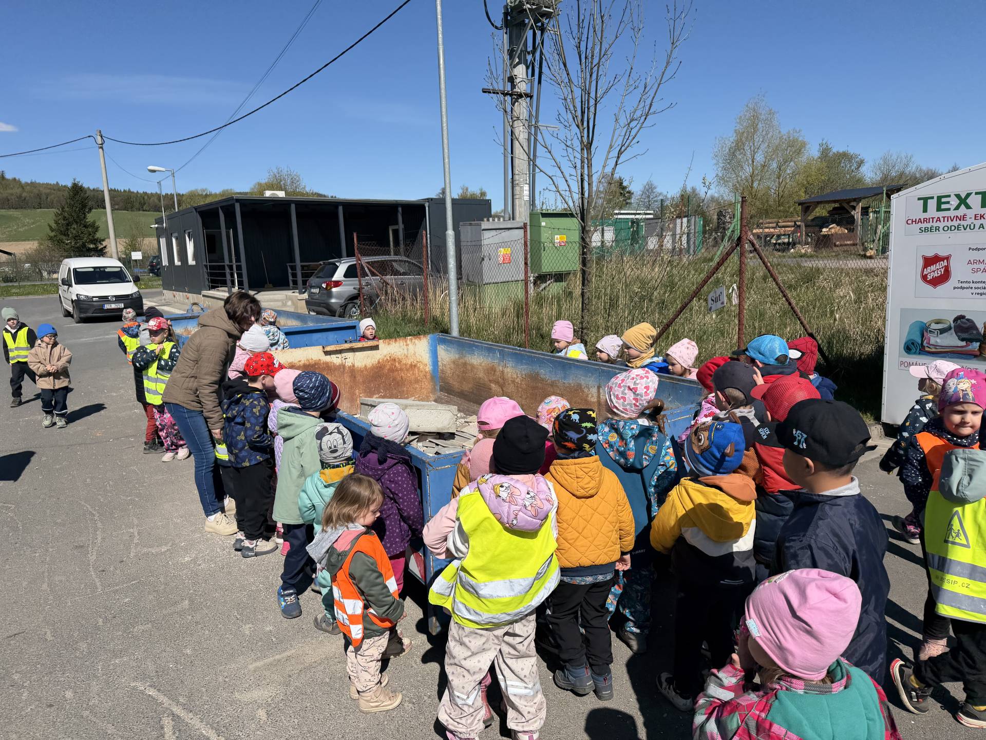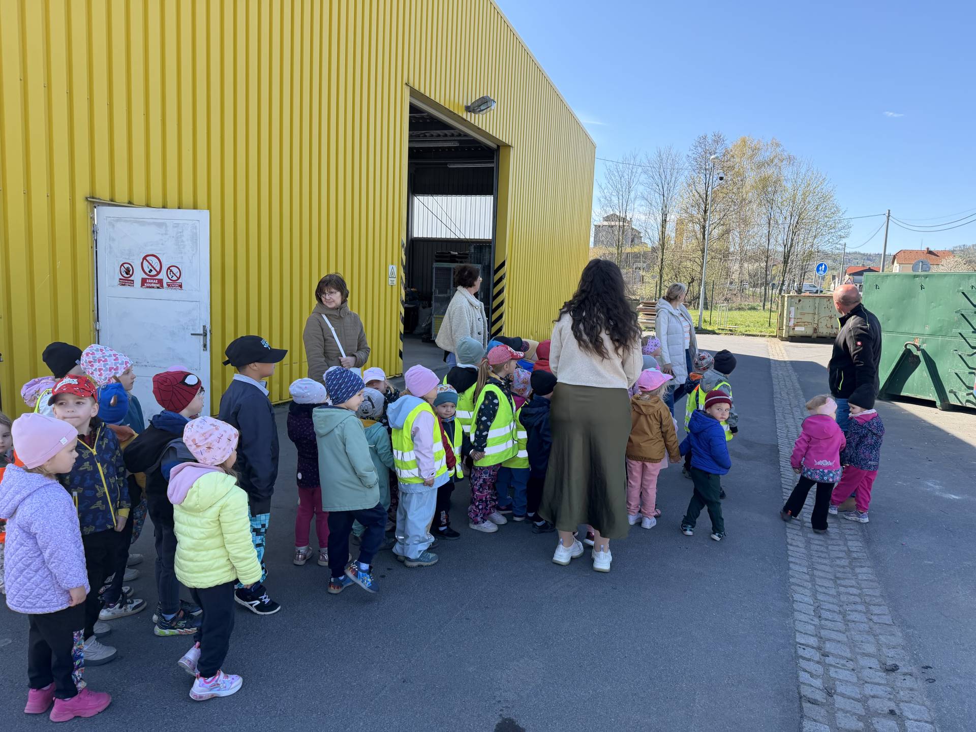 Po příchodu nás přivítal pan Křištof, který nás provedl celým areálem. Dětem srozumitelně vysvětlil, jak sběrný dvůr funguje a proč je důležité správně třídit odpad. Ukázal nám jednotlivé kontejnery na různé druhy odpadu, jako je papír, plast, sklo nebo kov, a vysvětlil, co kam patří.