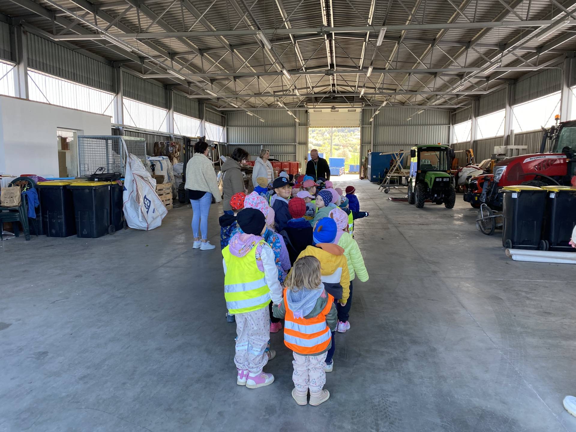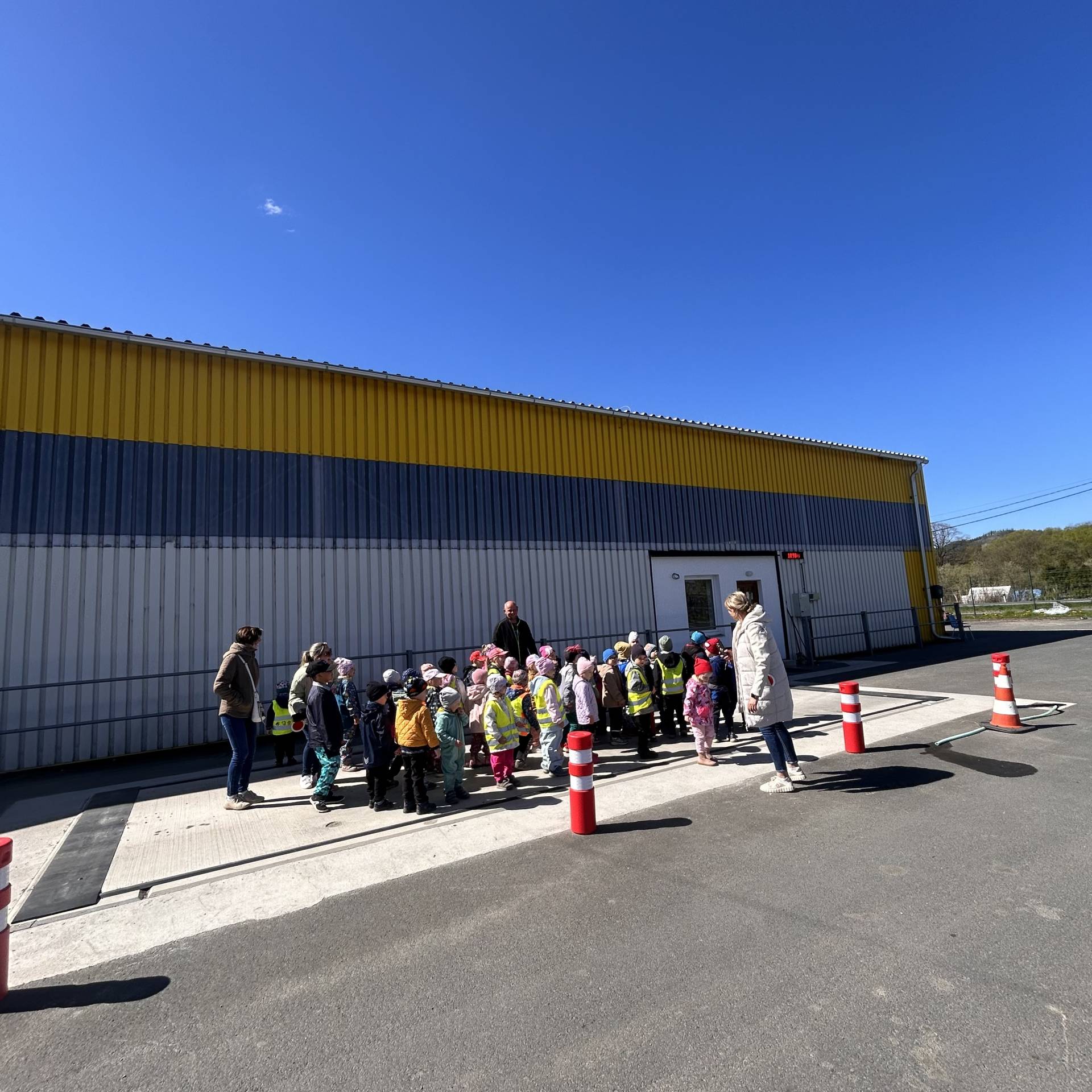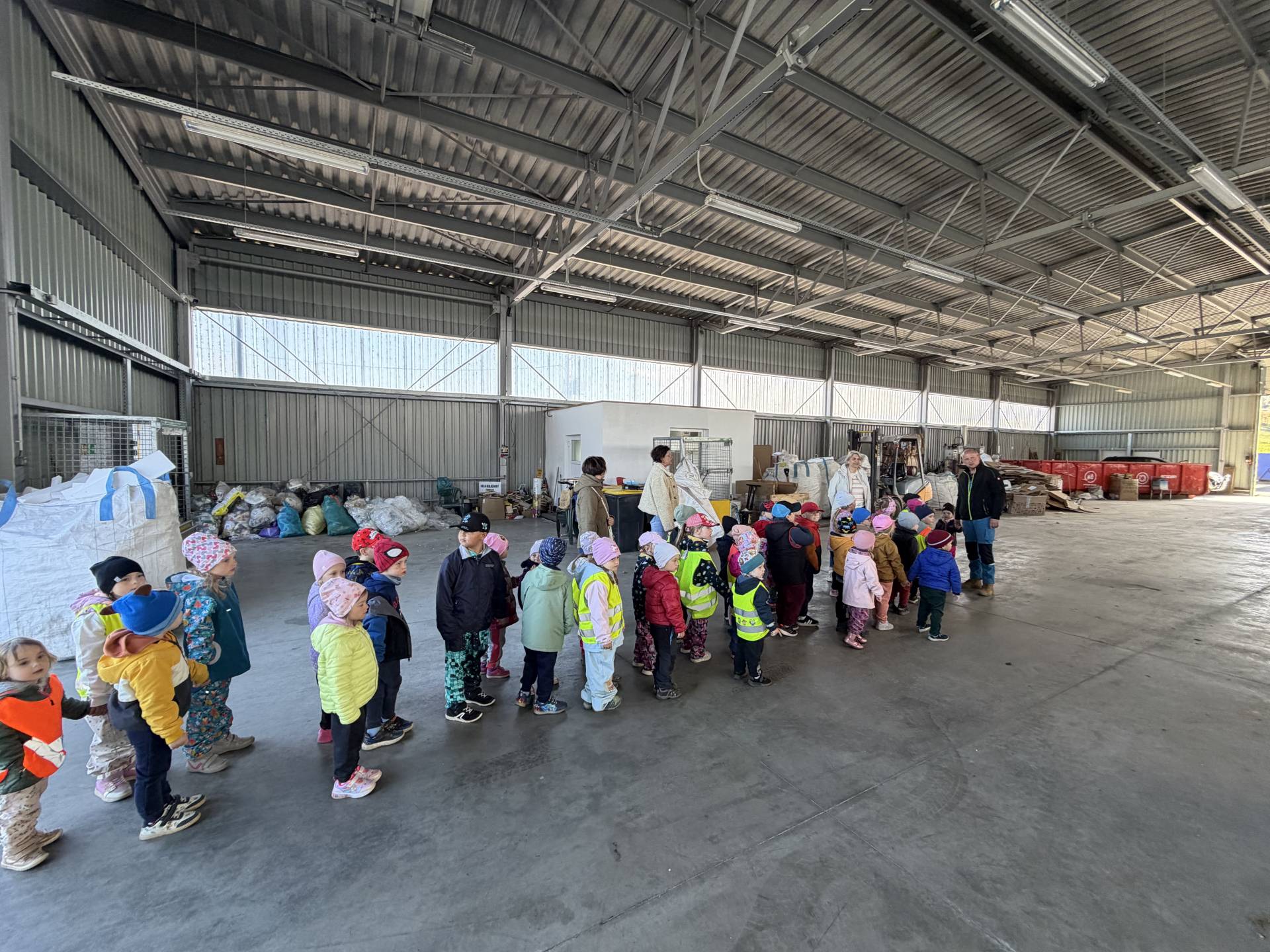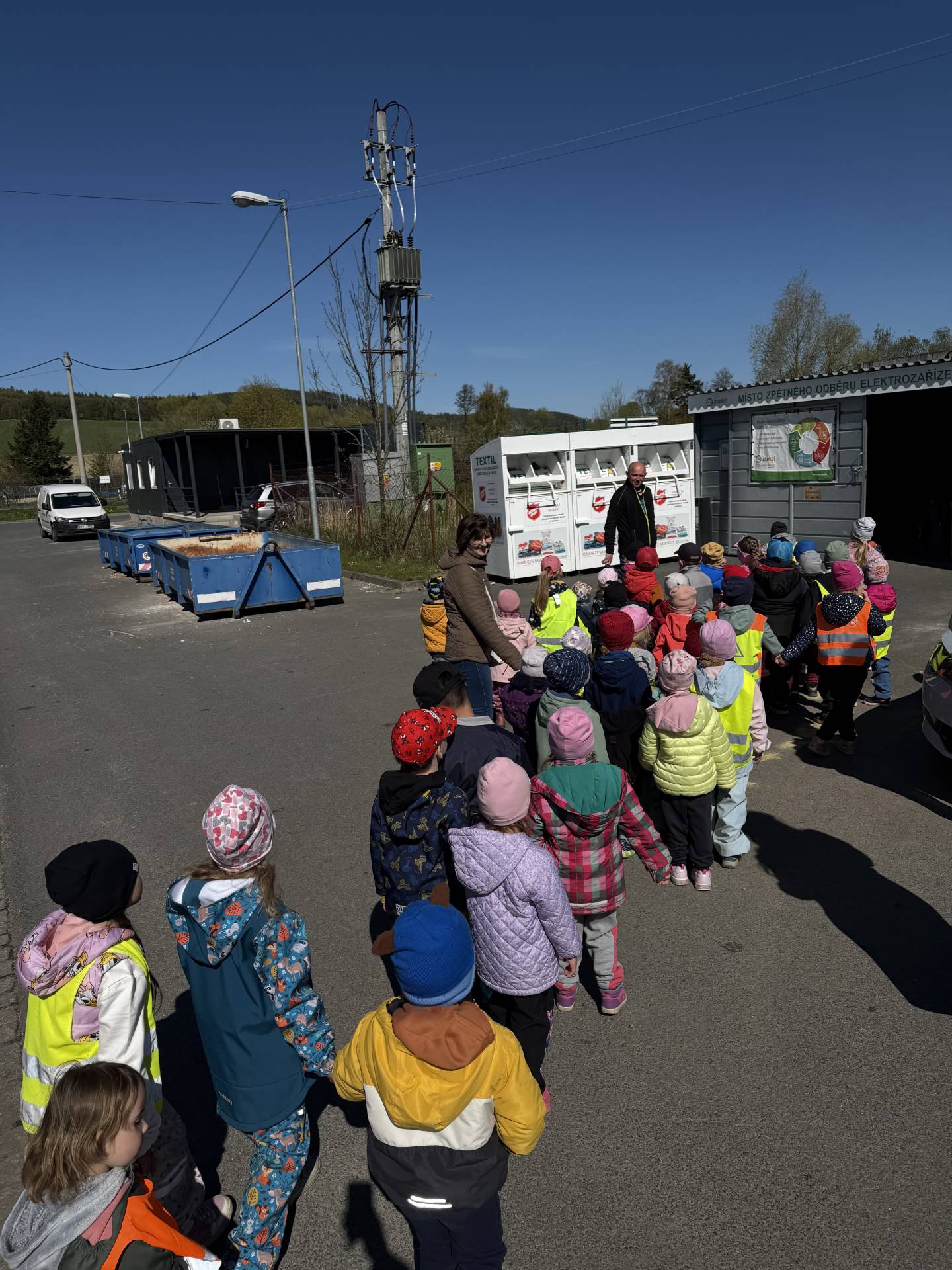 Po příchodu nás přivítal pan Křištof, který nás provedl celým areálem. Dětem srozumitelně vysvětlil, jak sběrný dvůr funguje a proč je důležité správně třídit odpad. Ukázal nám jednotlivé kontejnery na různé druhy odpadu, jako je papír, plast, sklo nebo kov, a vysvětlil, co kam patří.
