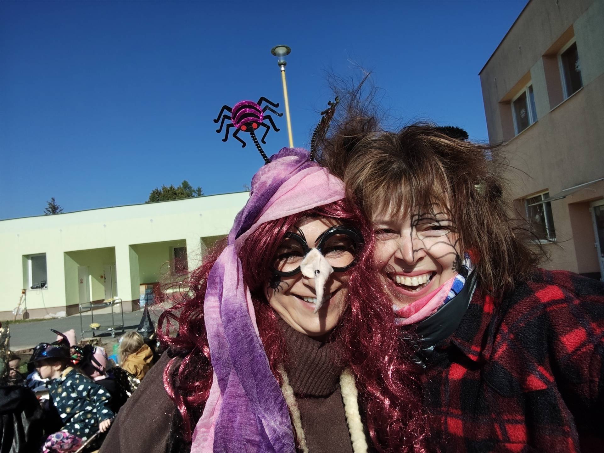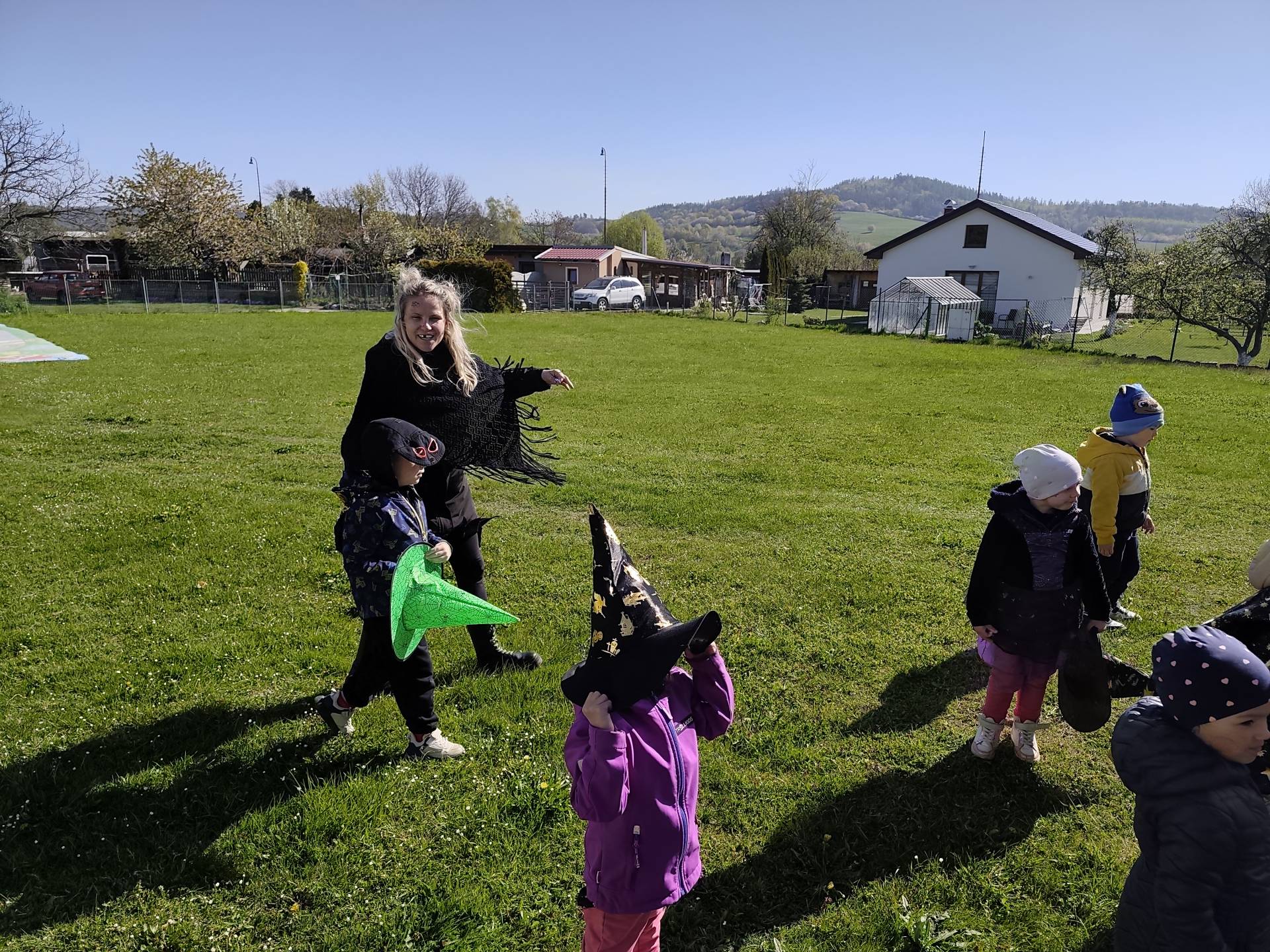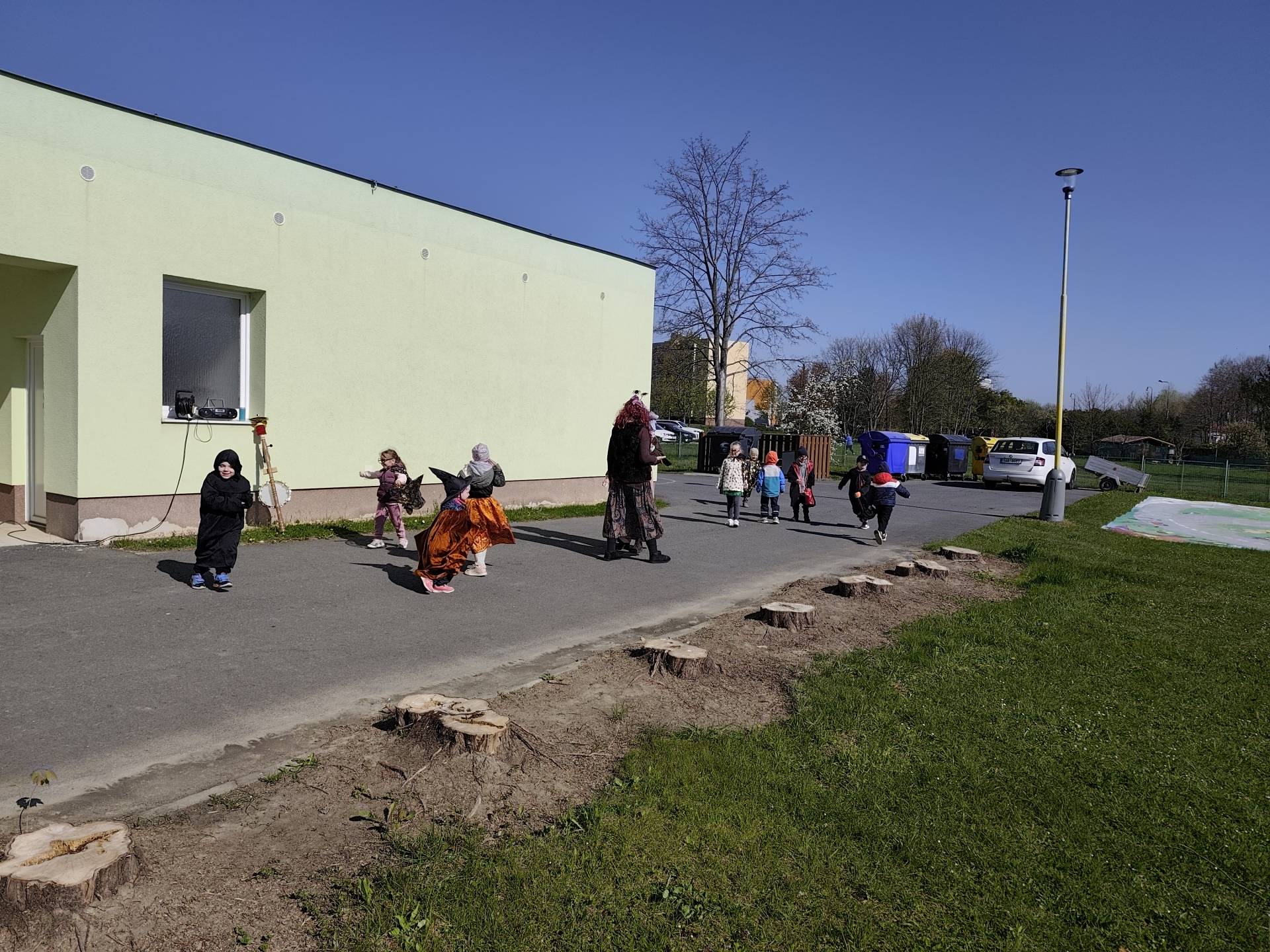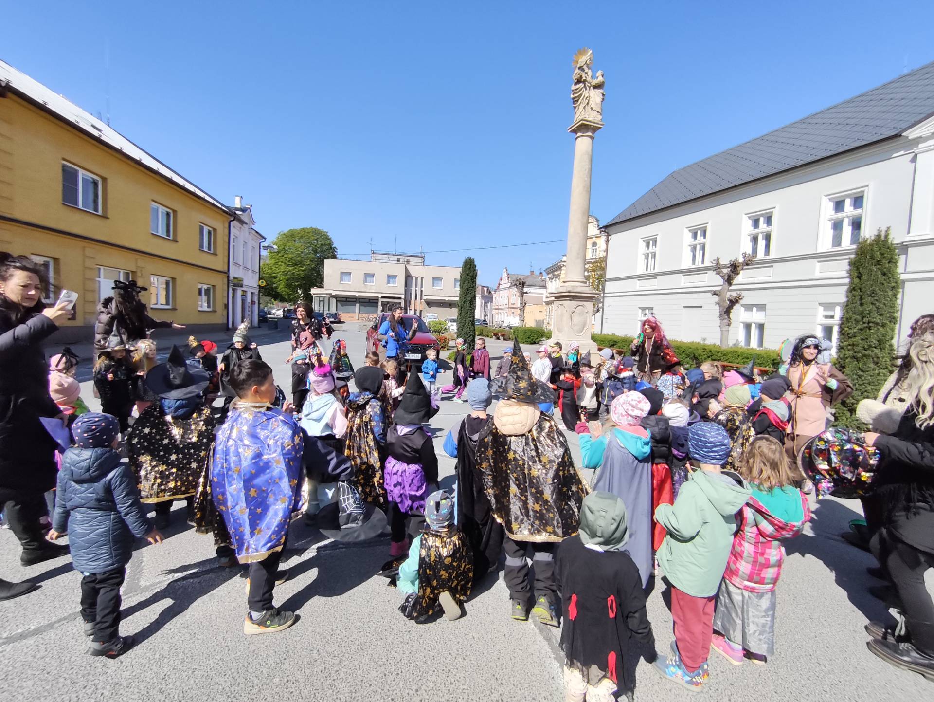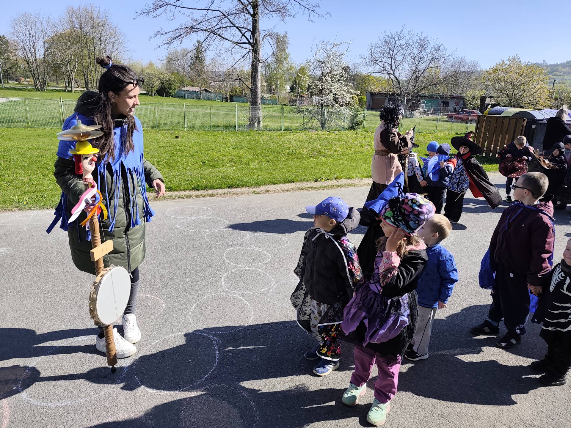 Po občerstvení jsme se přesunuli před školku, kde jsme si společně zatancovali a užili si čarodějnickou atmosféru. Následně jsme se vydali na průvod městem, během kterého děti v kostýmech rozdávaly radost a úsměvy všem kolemjdoucím.