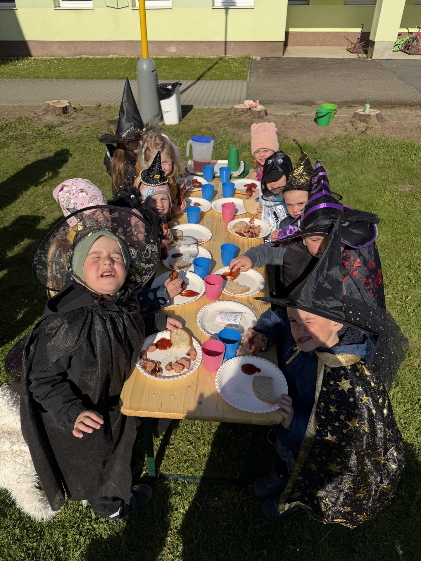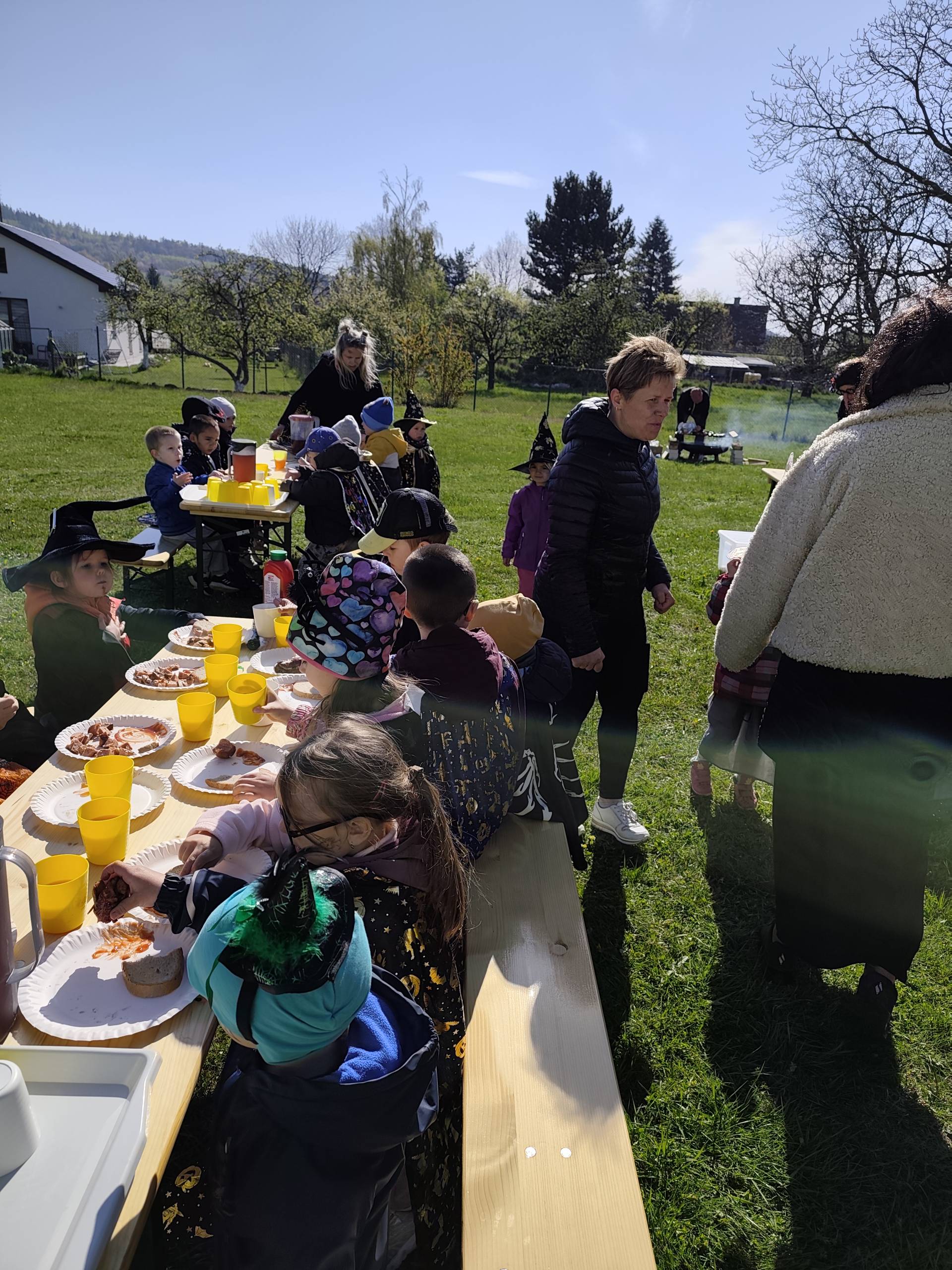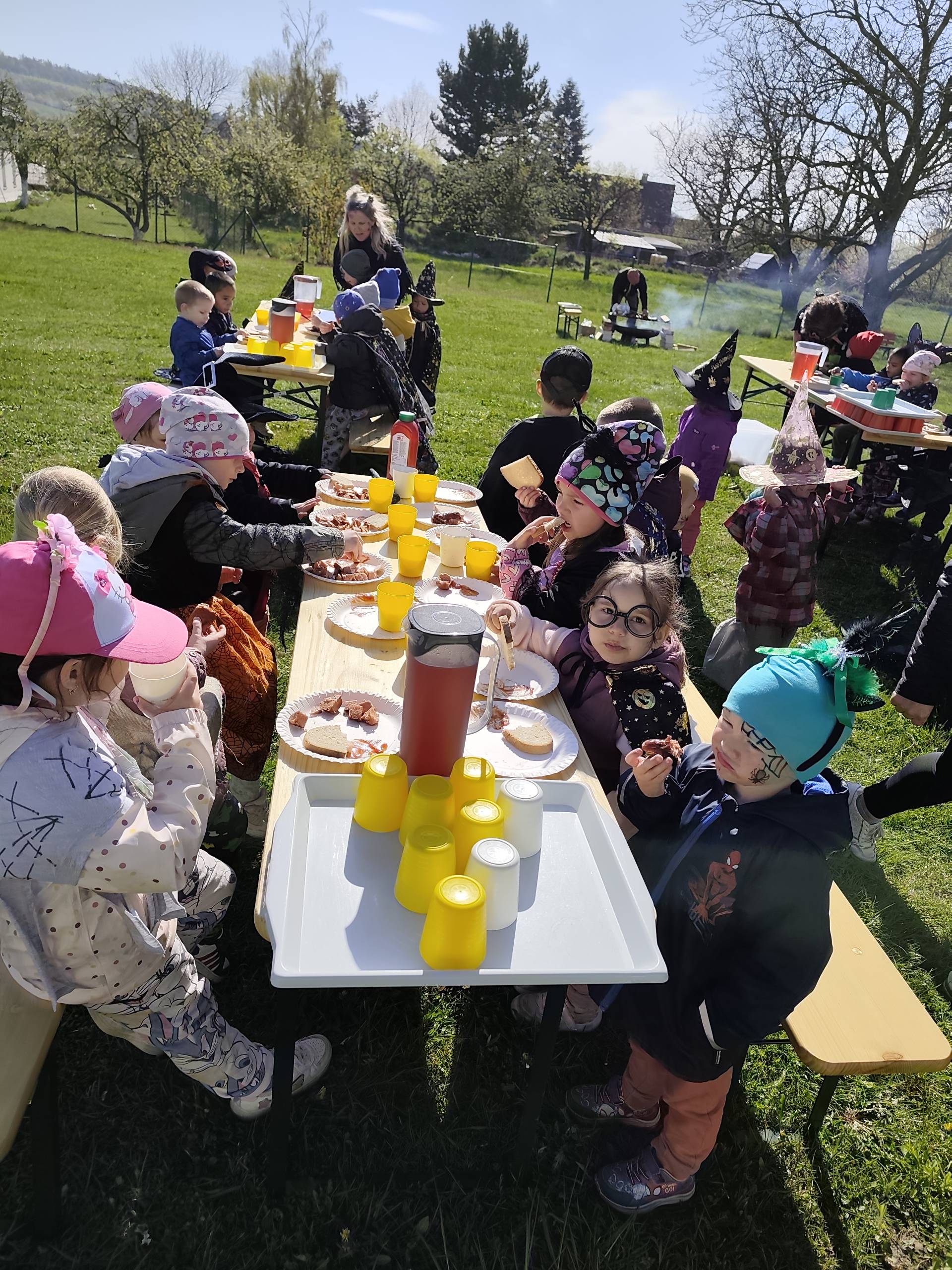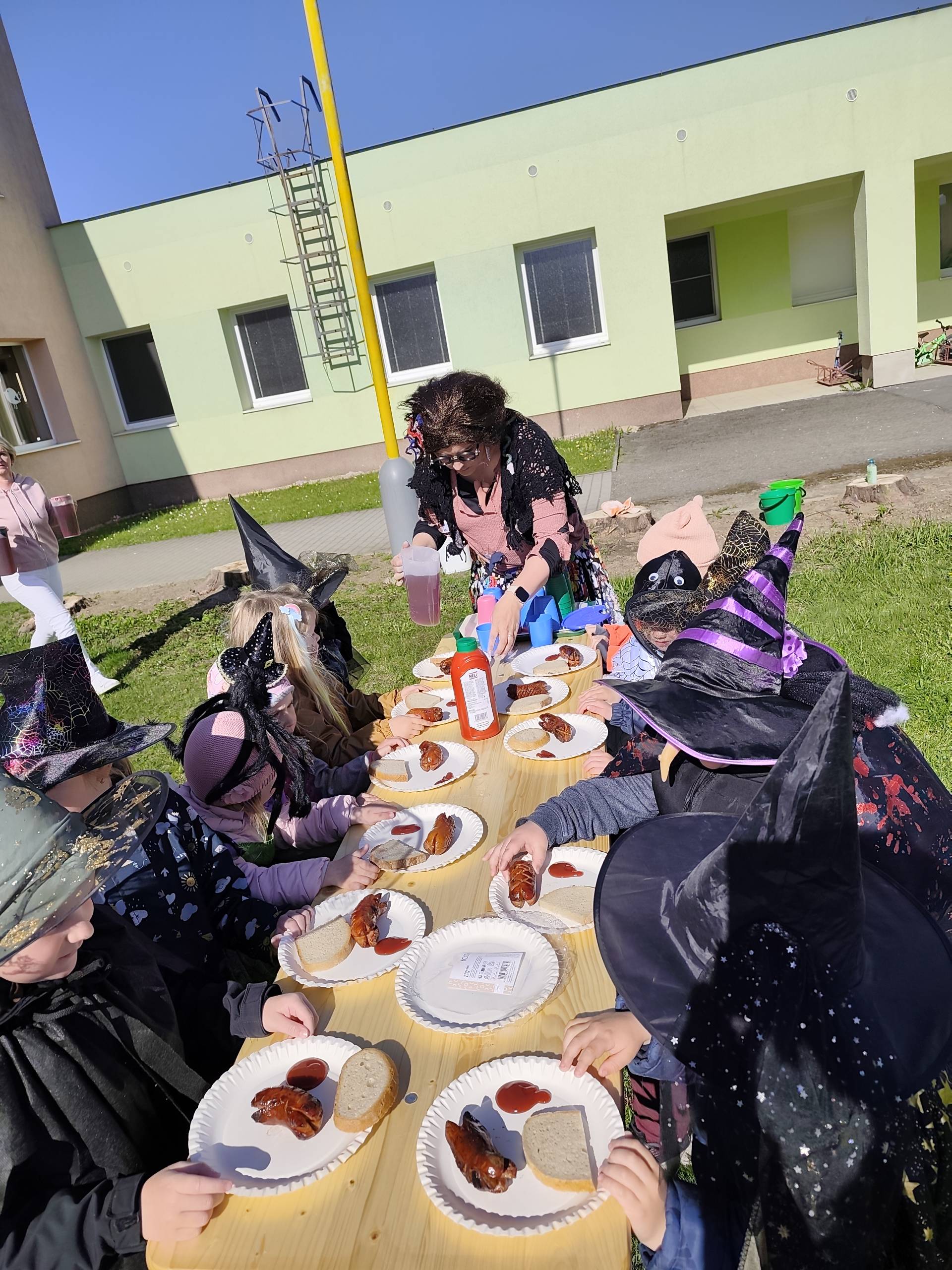 V naší mateřské škole jsme si užili veselé čarodějnické dopoledne plné zážitků. Ráno si děti zasoutěžily, vařily kouzelné lektvary a užily si i čarodějnickou zábavu. Následně jsme se vydali na zahradu, kde si děti pochutnaly na svačince v podobě opečených buřtů.