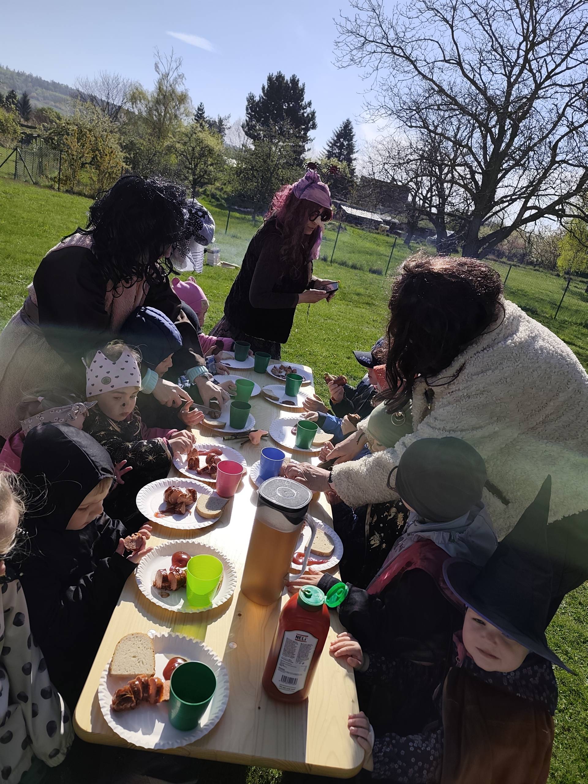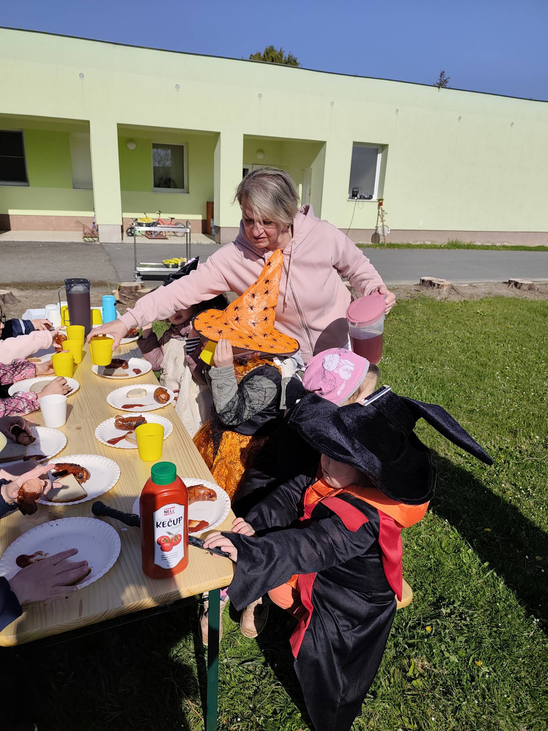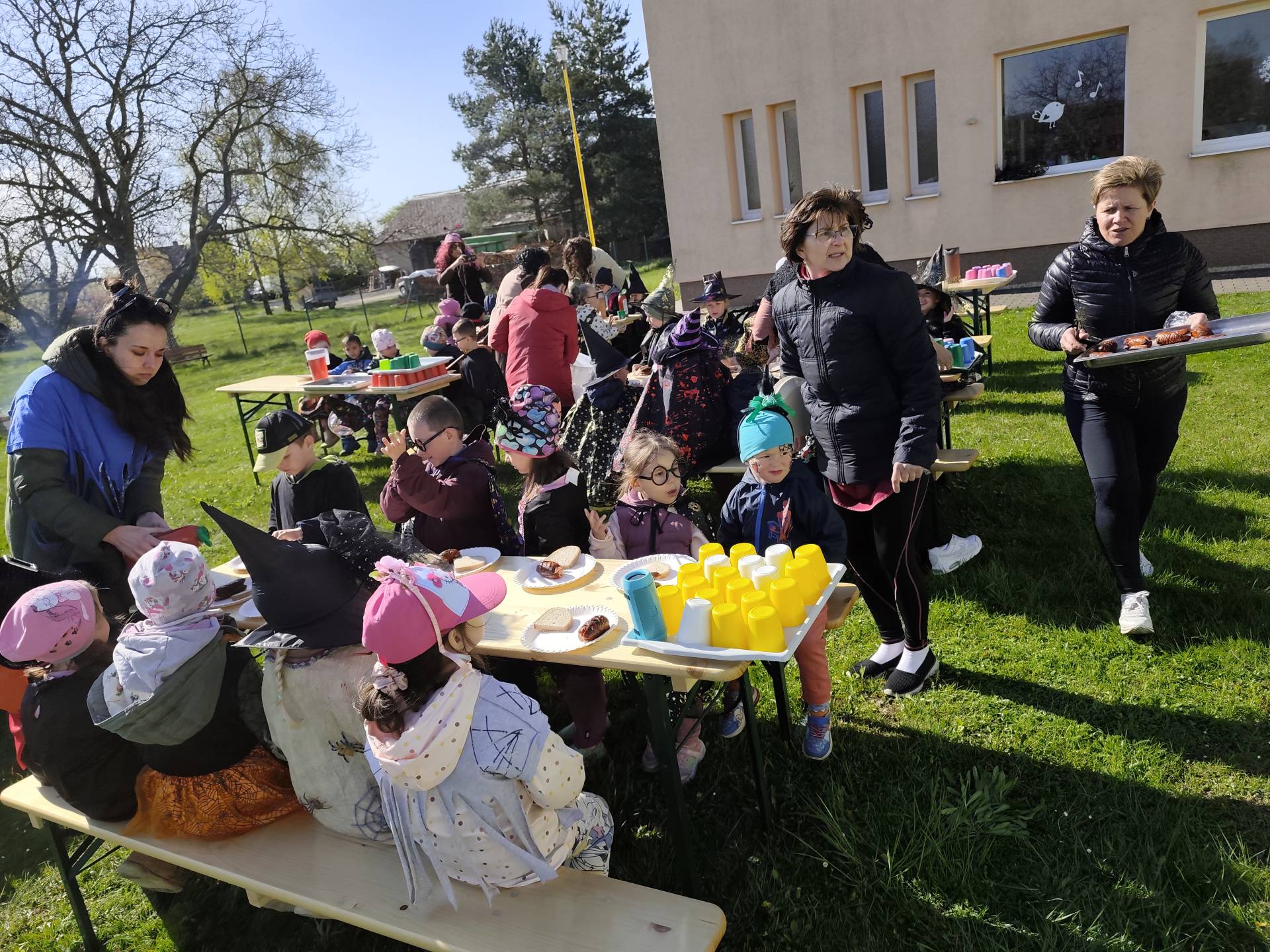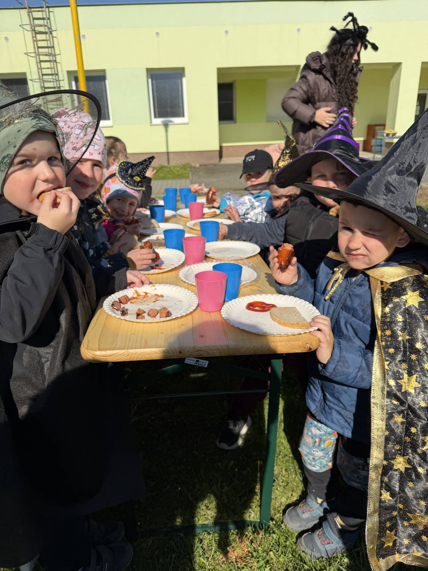 V naší mateřské škole jsme si užili veselé čarodějnické dopoledne plné zážitků. Ráno si děti zasoutěžily, vařily kouzelné lektvary a užily si i čarodějnickou zábavu. Následně jsme se vydali na zahradu, kde si děti pochutnaly na svačince v podobě opečených buřtů.