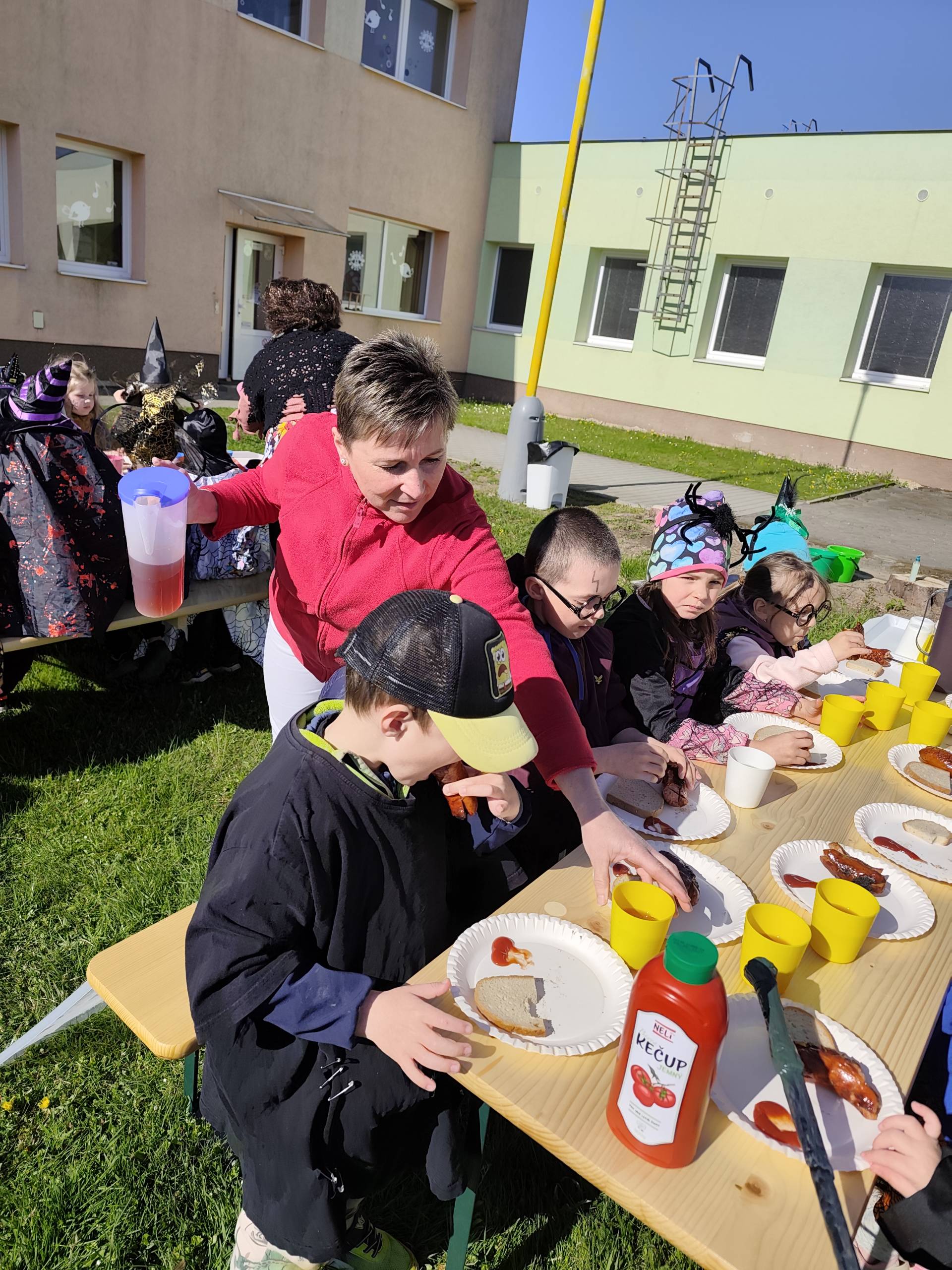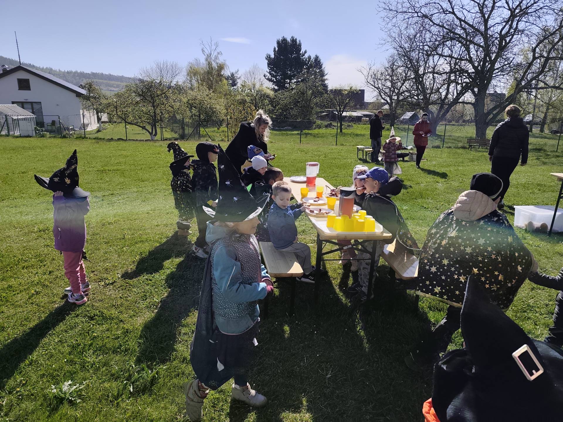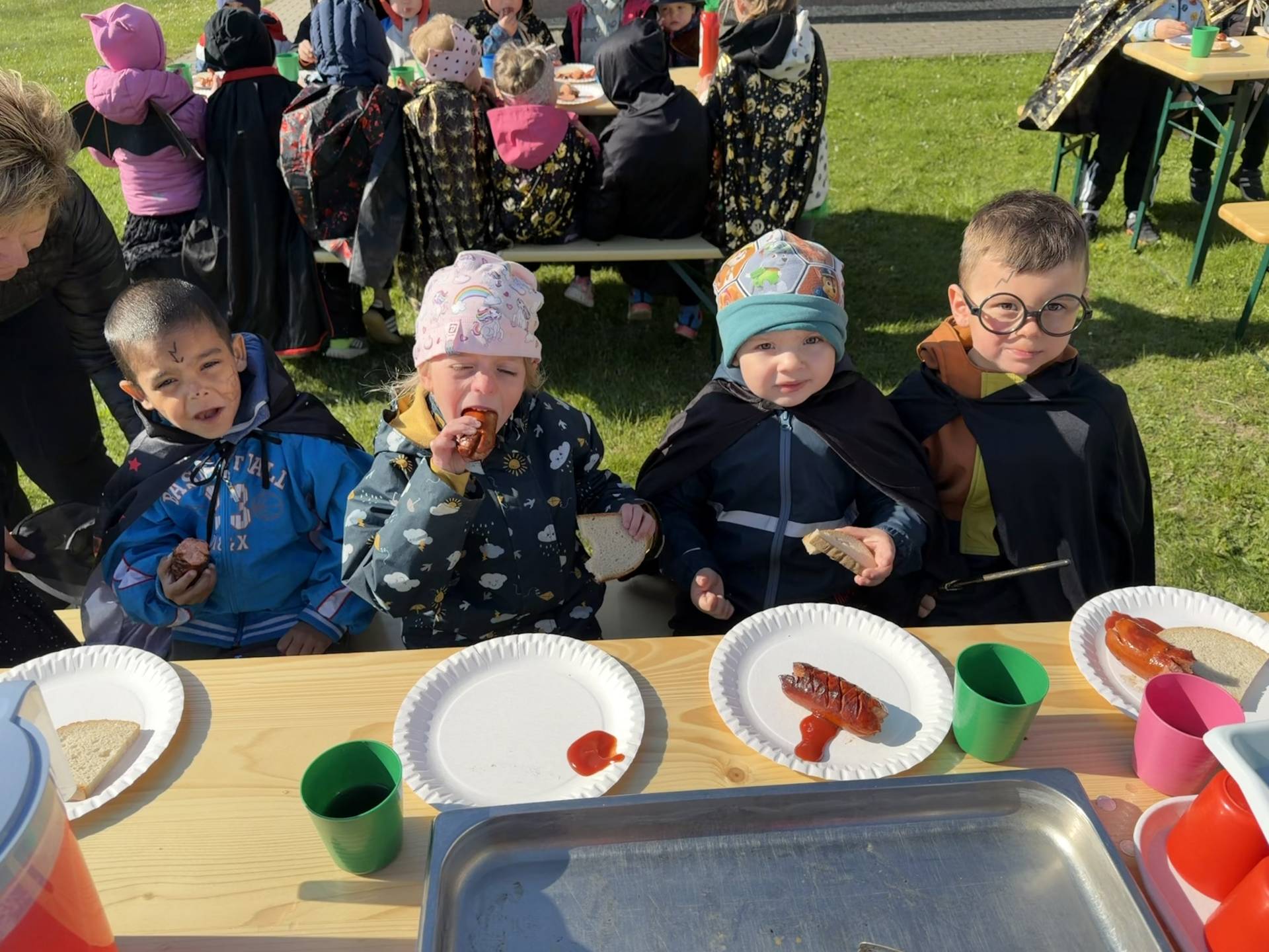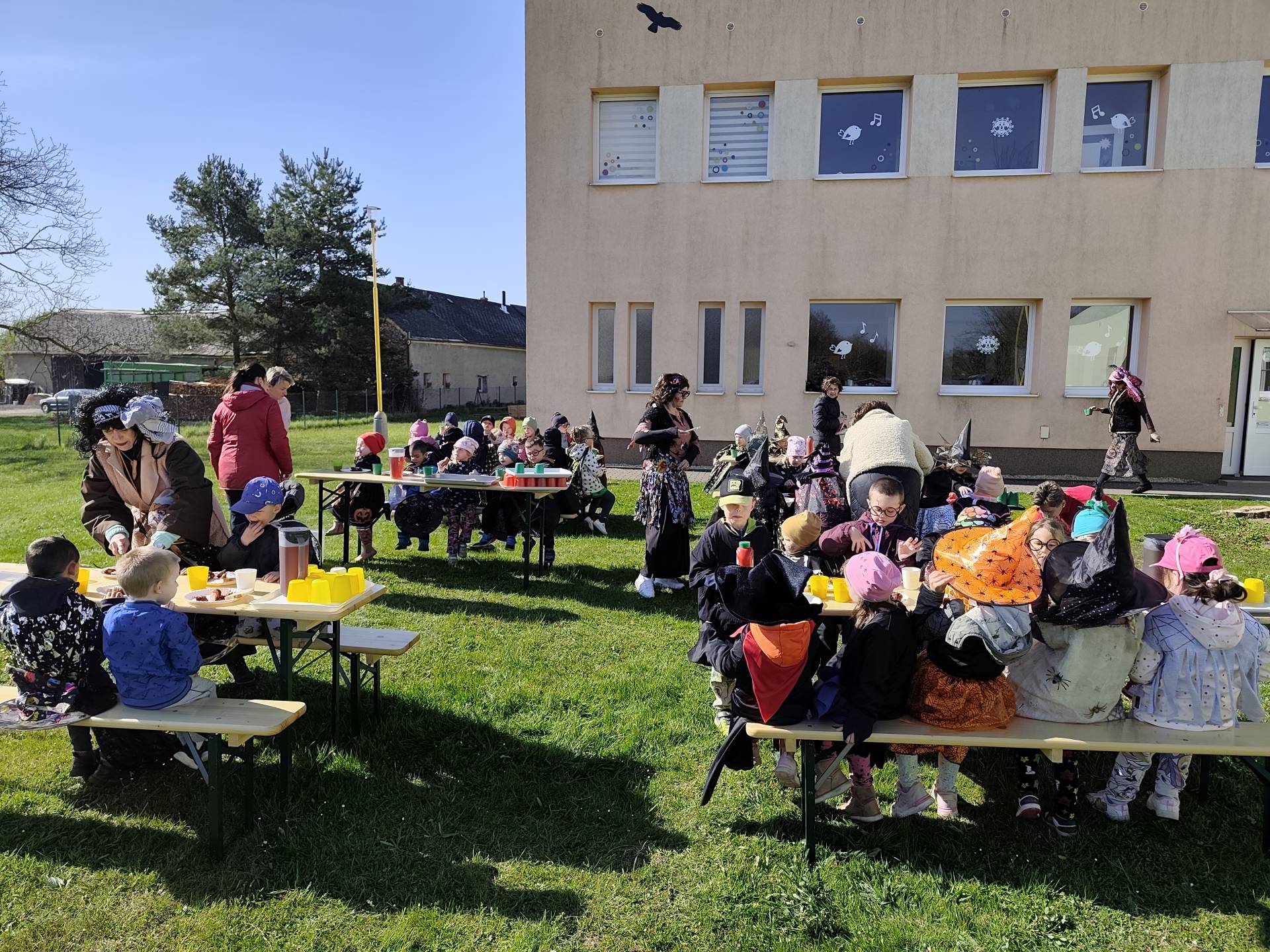 V naší mateřské škole jsme si užili veselé čarodějnické dopoledne plné zážitků. Ráno si děti zasoutěžily, vařily kouzelné lektvary a užily si i čarodějnickou zábavu. Následně jsme se vydali na zahradu, kde si děti pochutnaly na svačince v podobě opečených buřtů.
