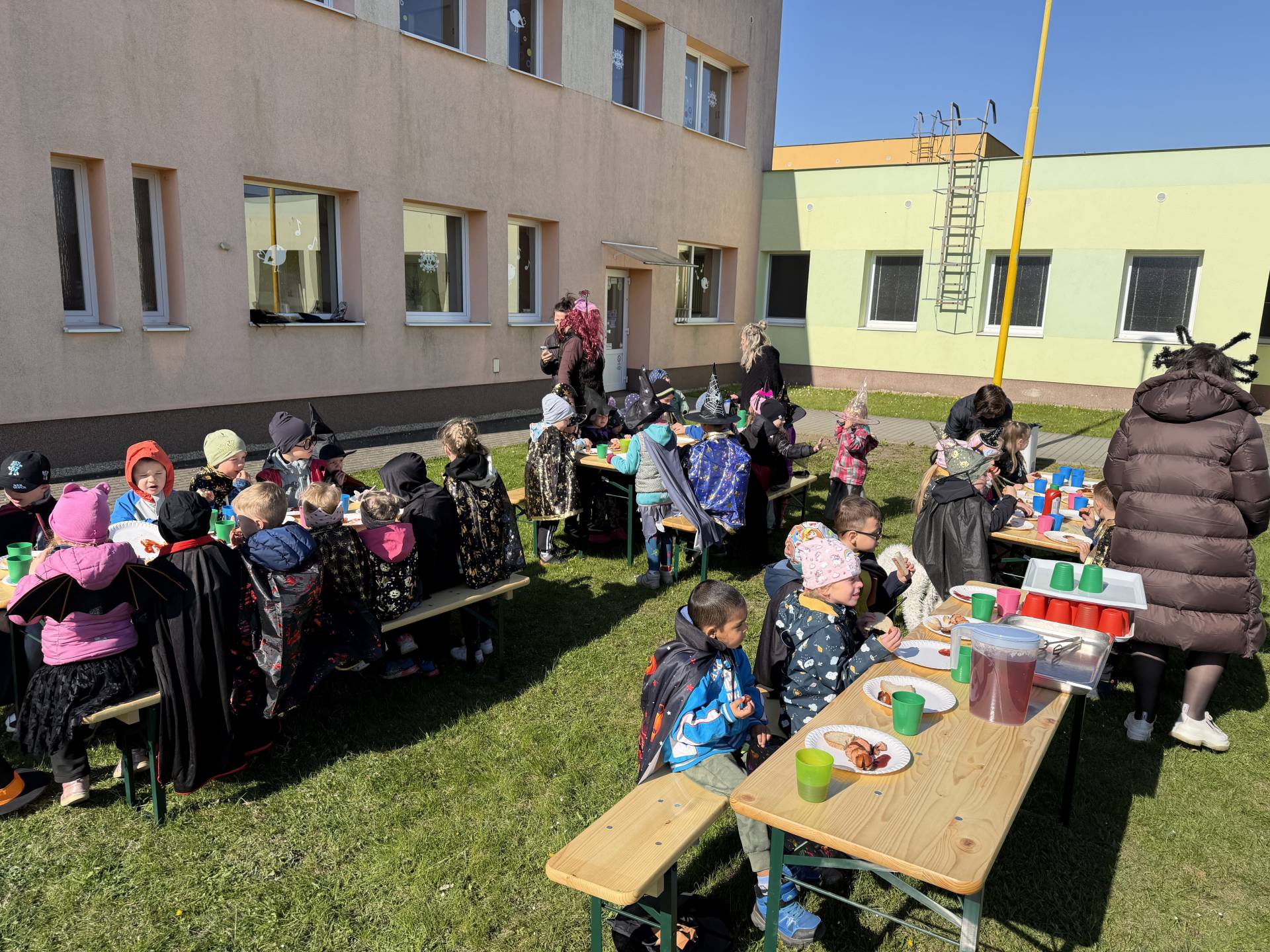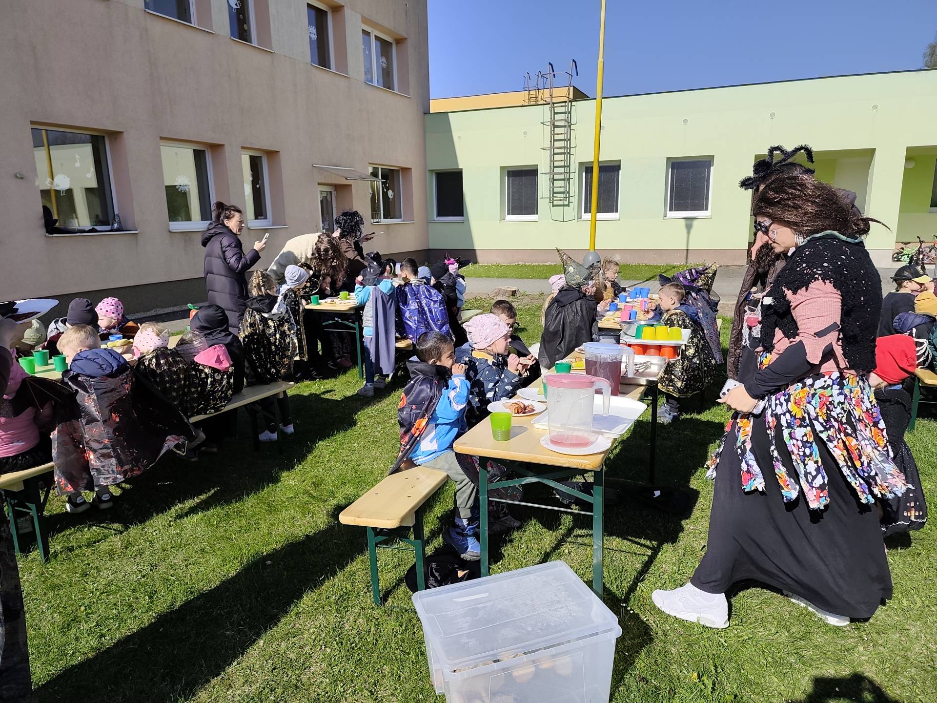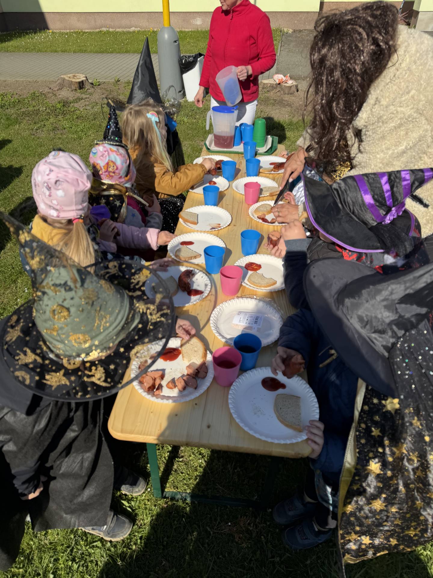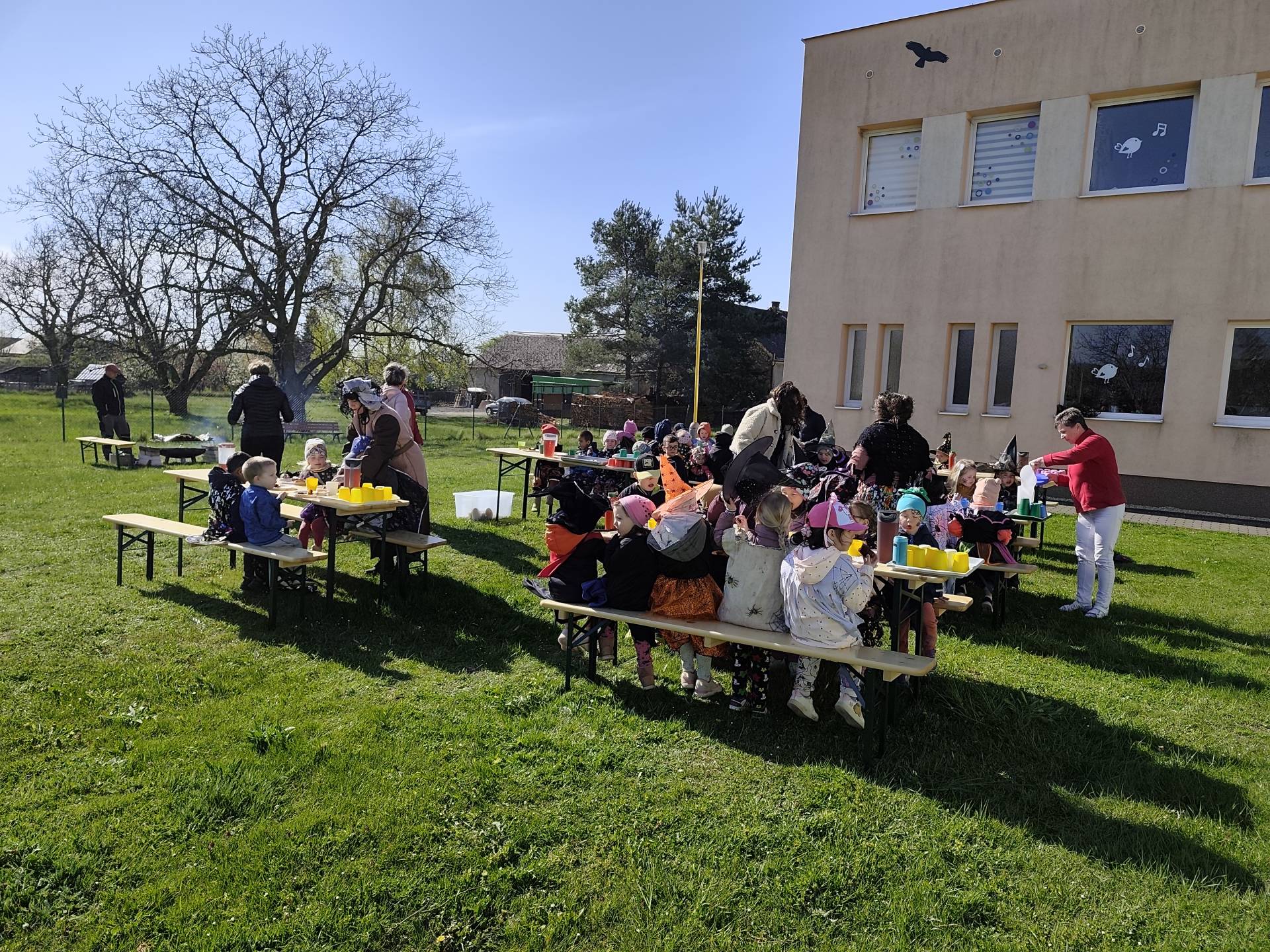 V naší mateřské škole jsme si užili veselé čarodějnické dopoledne plné zážitků. Ráno si děti zasoutěžily, vařily kouzelné lektvary a užily si i čarodějnickou zábavu. Následně jsme se vydali na zahradu, kde si děti pochutnaly na svačince v podobě opečených buřtů.